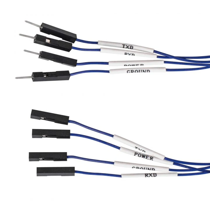 Connect the 5.0v power supply pin, and GND pin, RXD, TXD pins via Dupont cable.