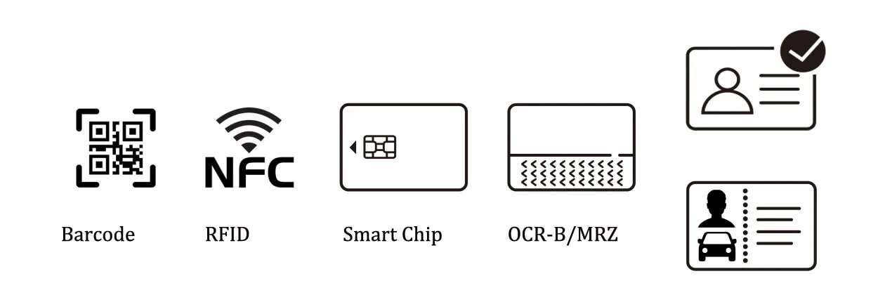Obtener imágenes de identificación, leer códigos de barras/OCR y leer la información biométrica del chip RFID de la tarjeta en un solo paso.