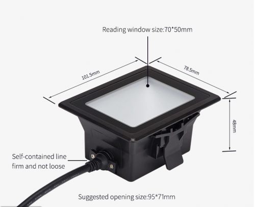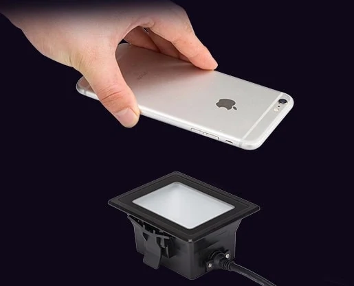 Con una ventana de escaneo grande de 70 cm * 50 cm, el código de barras se puede ingresar fácilmente en el área visible del lector, para que el lector pueda capturar y leer el código fácilmente. Además, con una pantalla de tamaño pequeño o una pantalla de gran tamaño, el lector puede leer el código desde el teléfono fácilmente.