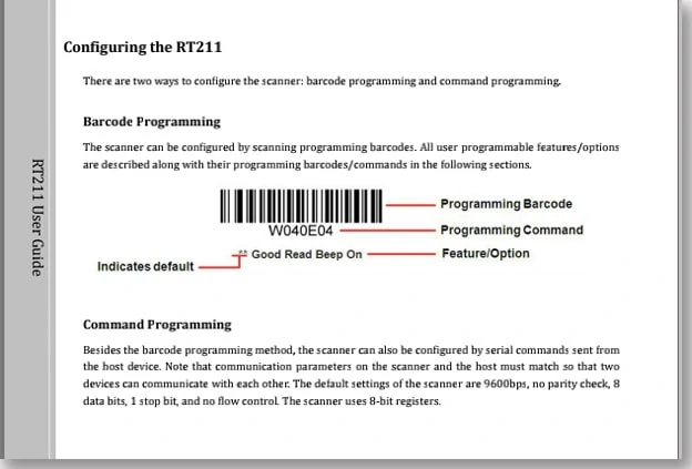 Para programar/configurar el módulo del escáner, puede hacerlo simplemente por escanear los códigos del Manual del usuario que le proporcionamos. Por favor solicite a nuestro sales el manual de usuario completo y detallado.
