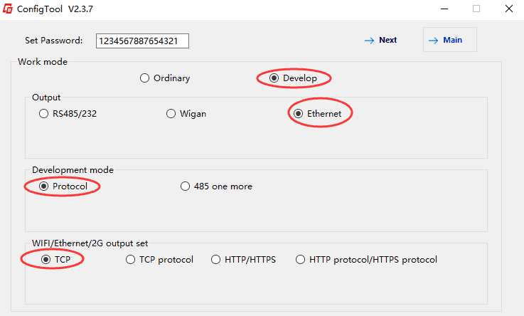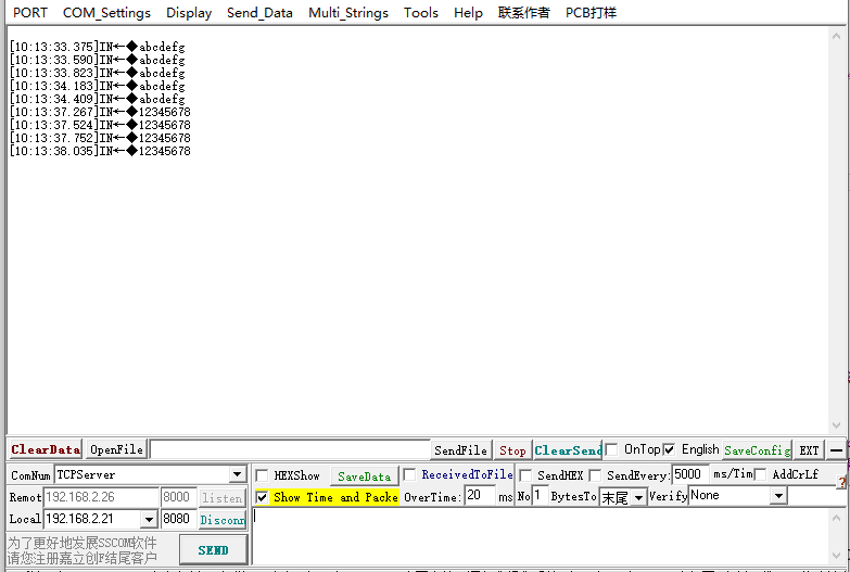 WIFI/Ethernet/2G output: TCP