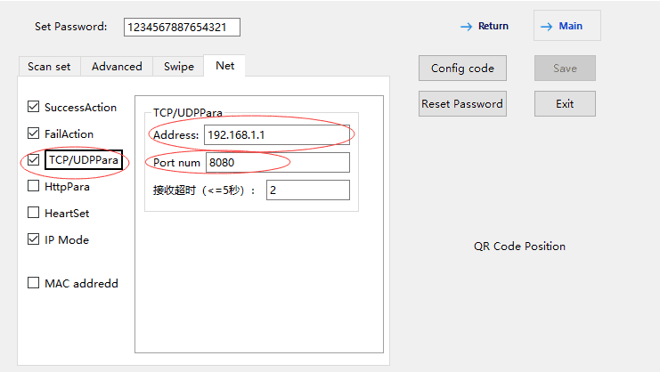 After the configuration is complete, the device automatically connects to the specified server, and then reports the scan data after scanning the code.