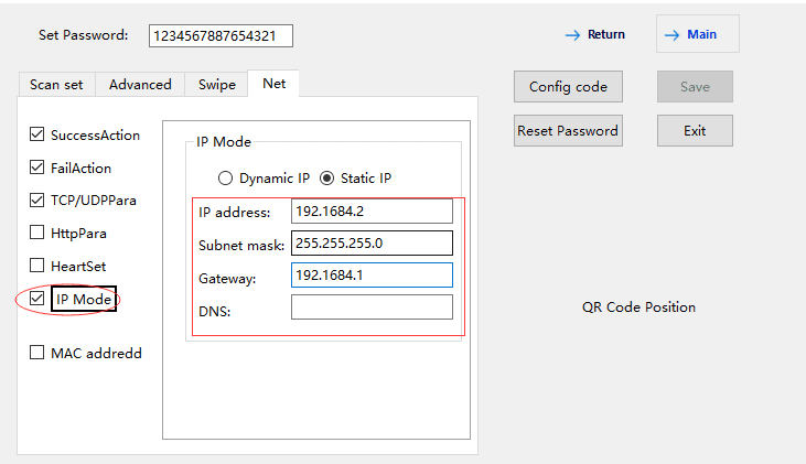 Static IP: manually specify the IP address, when set to static IP, you must specify the IP address, Subnet mask, Gateway, the format is as follows