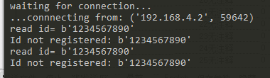 In this test, the server side uses python to build tcpsever, reads the data uploaded by the device, and judges whether it meets the registered id and is in compliance with the issued unlock instruction