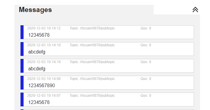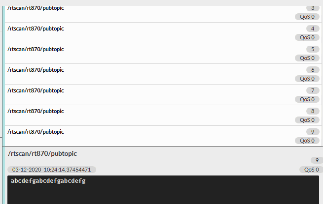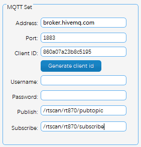 - Publish: /rtscan/rt870/pubtopic can be customized